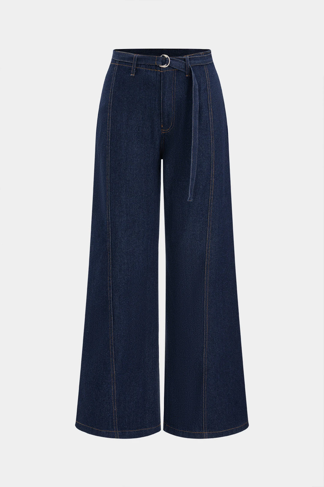 Denim High Waist Belted Wide Leg Jeans