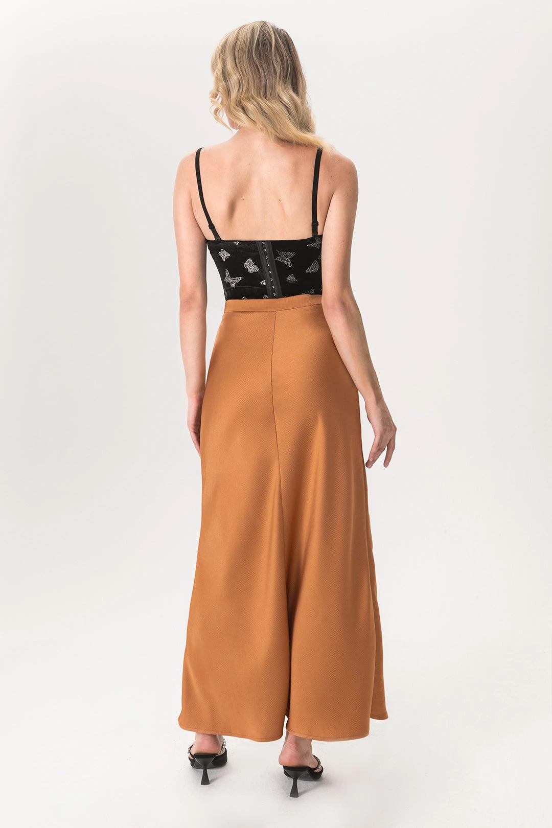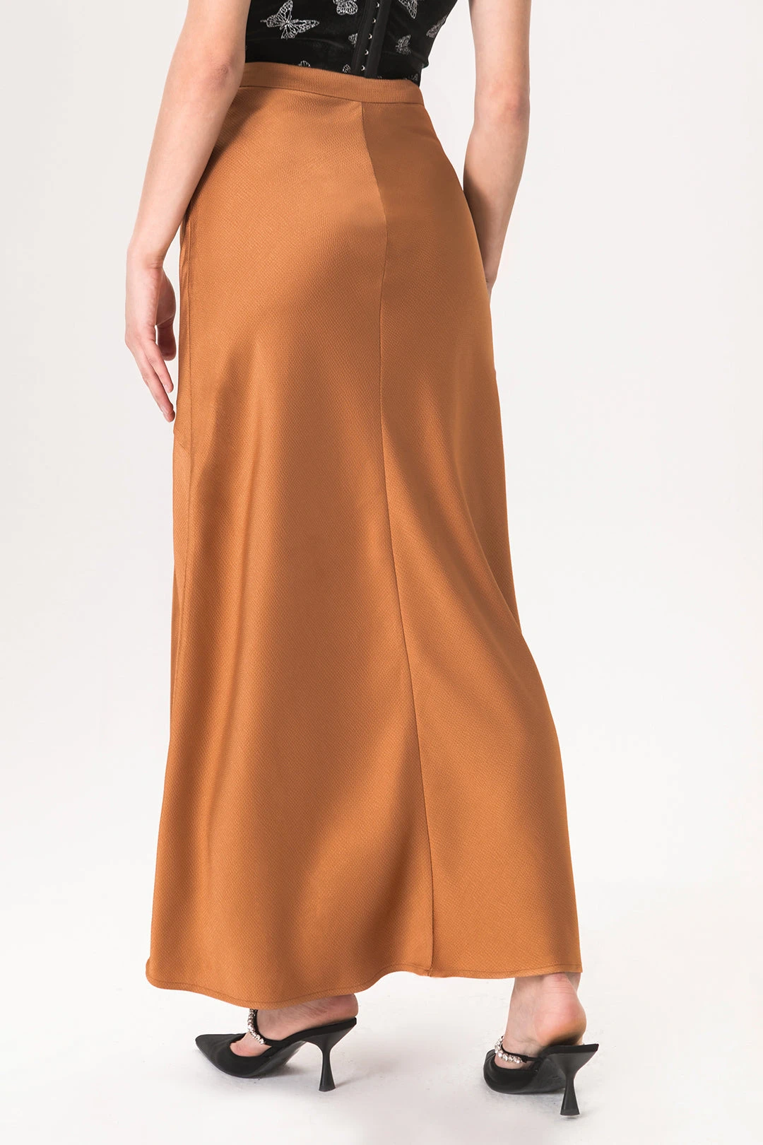 Slit Satin Midi Skirt
