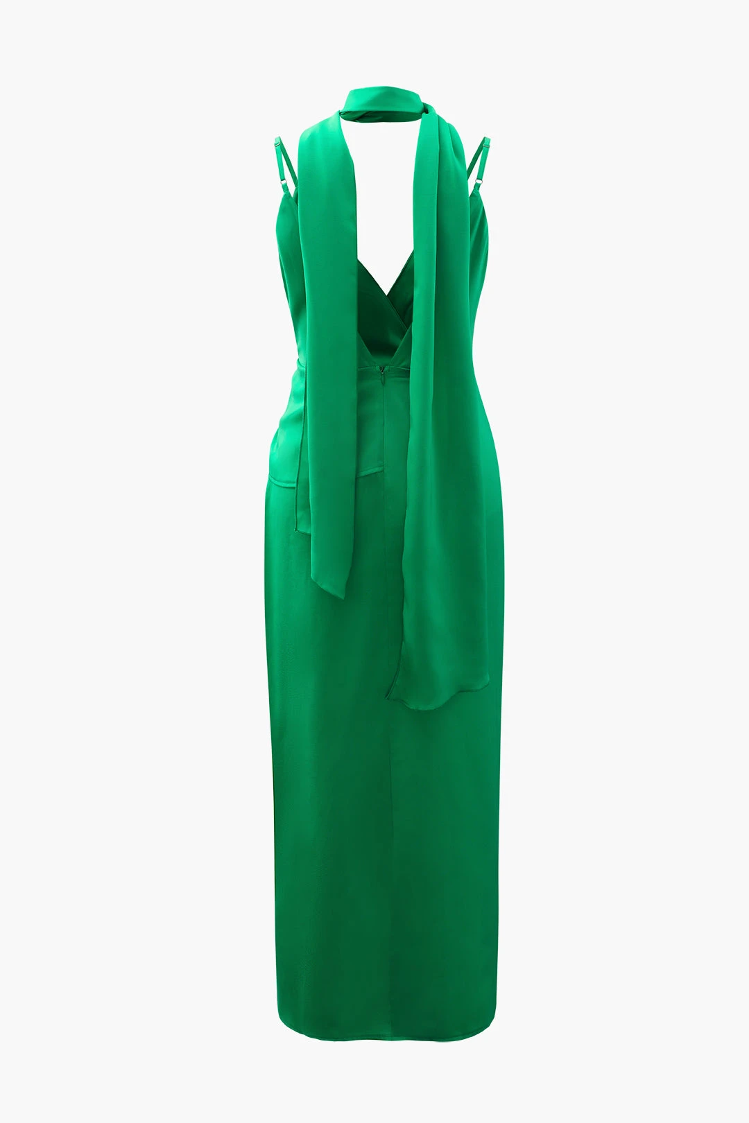 V-neck Satin Pleated Dress With Neck Scarf