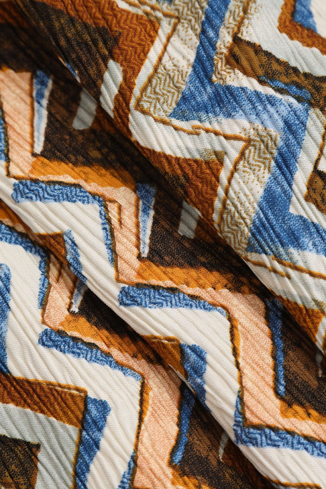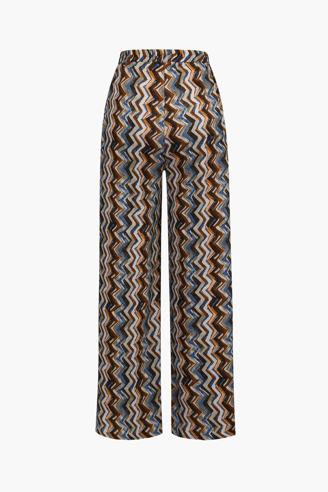 Zigzag Print Plisse Wide Leg Trousers